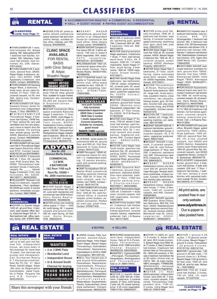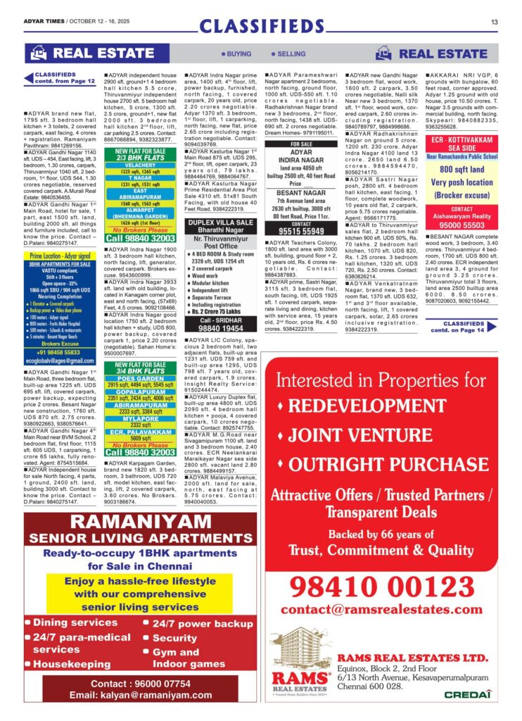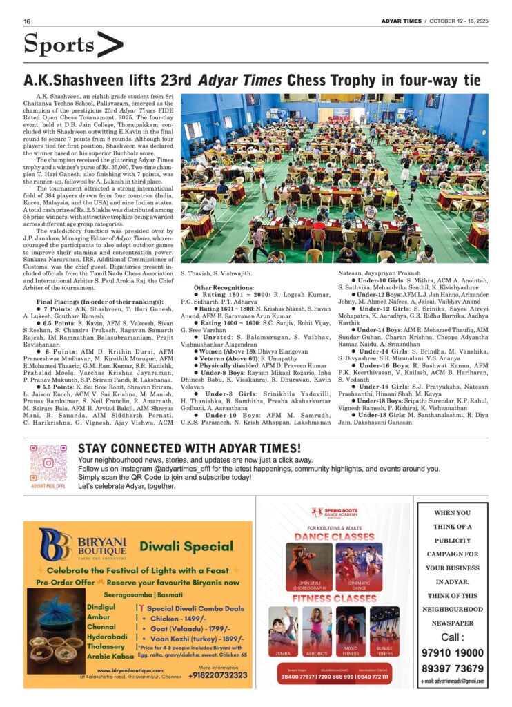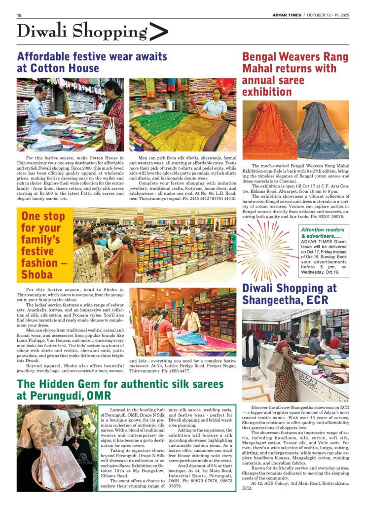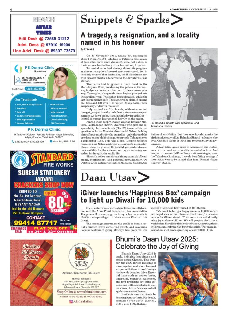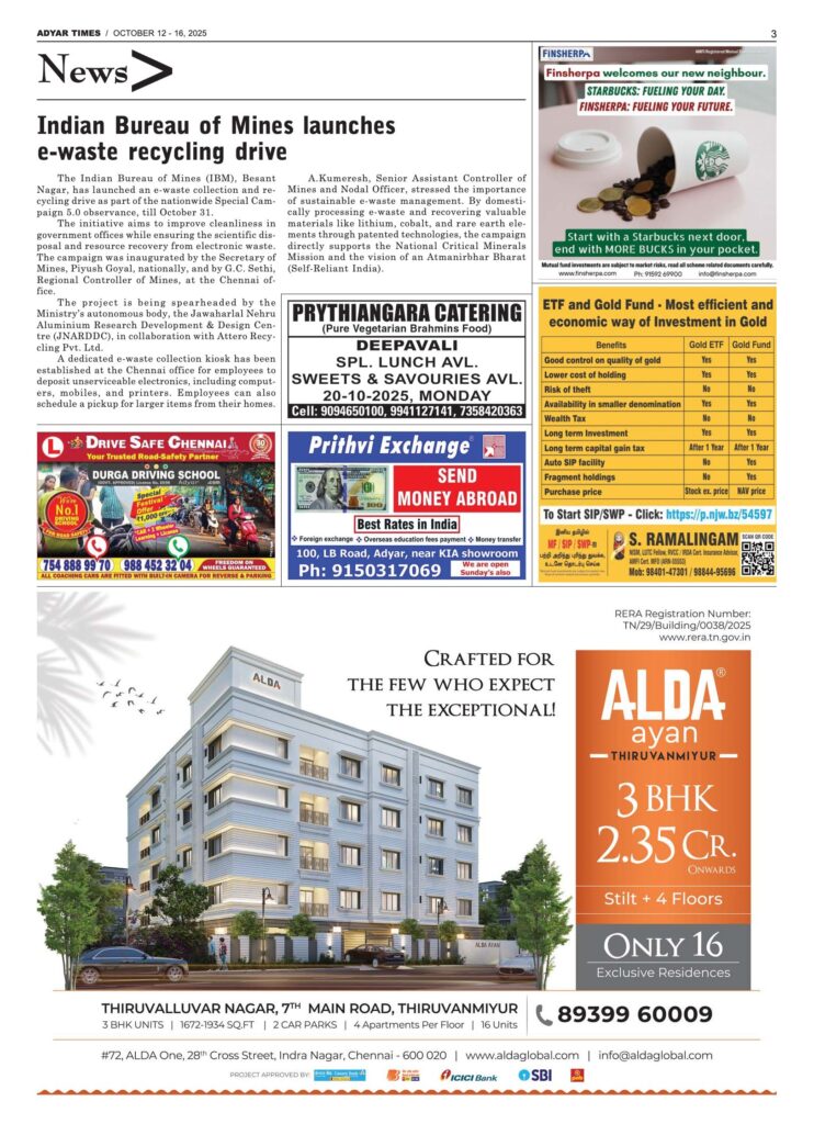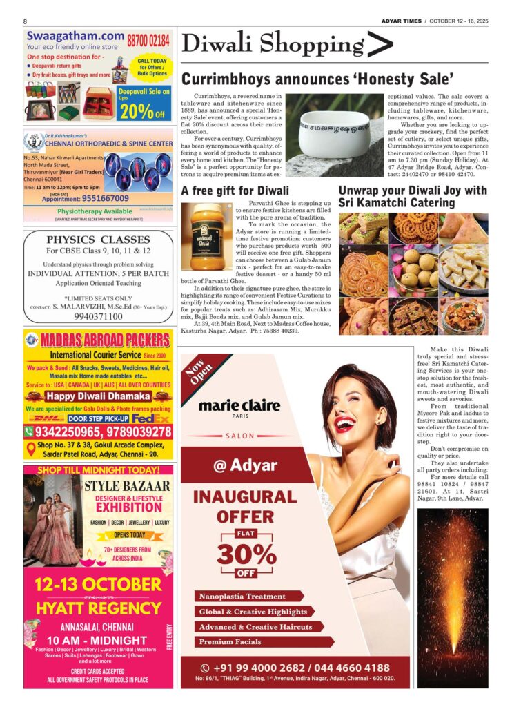 Adyar Times was established in Chennai in the year 1993, founded by Mr.S.P.Ambrose, IAS (Retd.). The concept of a newspaper for the neighbourhood was a novel idea then. The English weekly (Sunday) now boasts a circulation of 42000 copies with an average of 16 pages per issue.