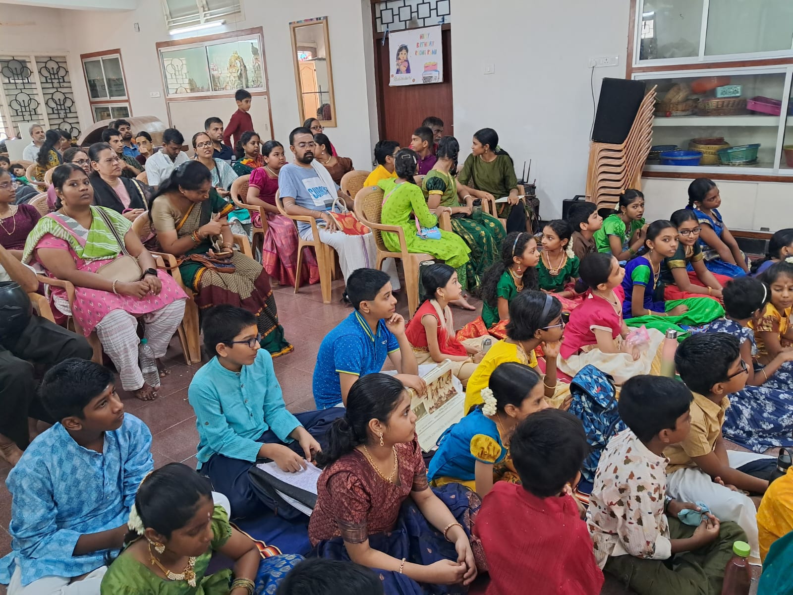 The event, attended by over 40 children and 50 parents, featured chief guest Hemalatha Muralidharan and Special Guest C. S. Ram, who inspired children on leadership and the value of Sanskrit. Young participants showcased their skills through skits, songs, and recitations.